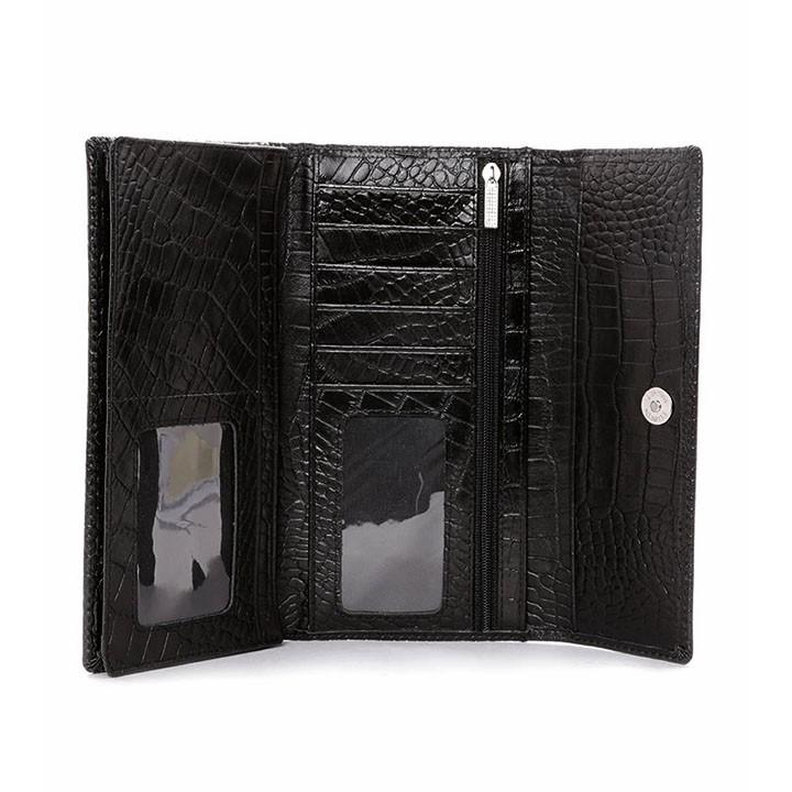 Ví/Bóp nữ da bò Huy Hoàng vân cá sấu nhỏ 3 gấp màu đen 3149