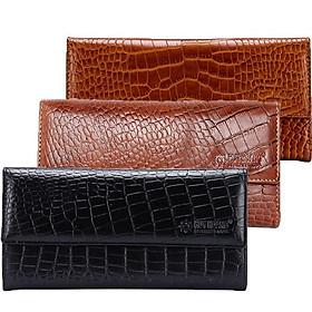 Ví nữ/Bóp nữ da bò vân cá sấu Huy Hoàng 3 gấp vân nhỏ màu da, đen, nâu 3105-06-07