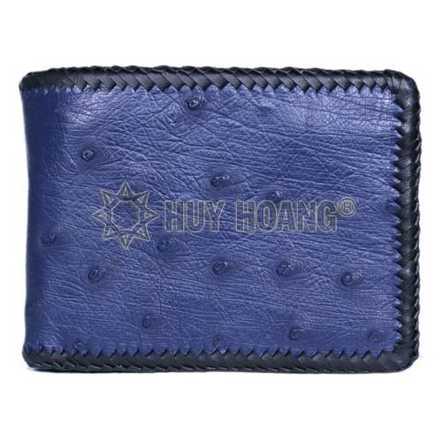 • Tên sản phẩm: Bóp nam Huy Hoàng da đà điểu da bụng đan viền màu xanh đậm