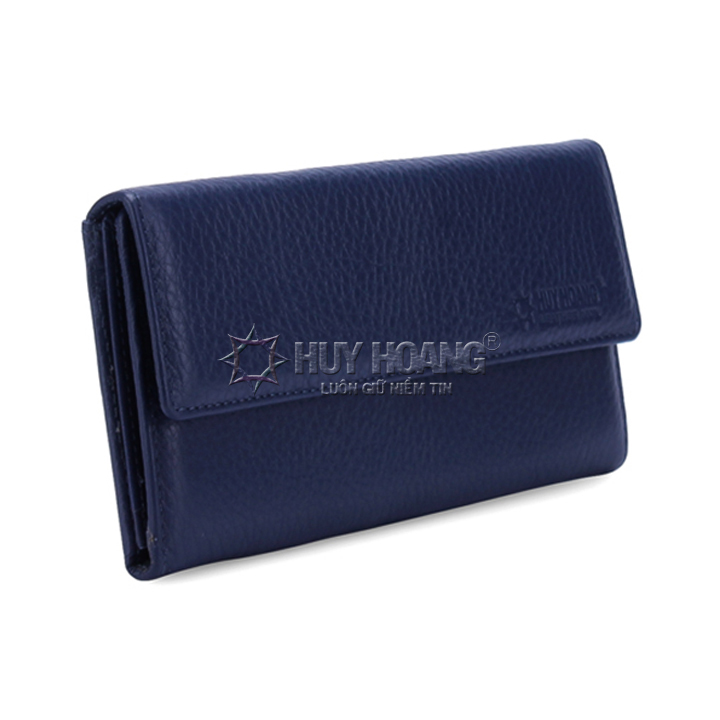 Ví/Bóp nữ da bò Huy Hoàng cao cấp 3 gấp màu xanh biển 3163