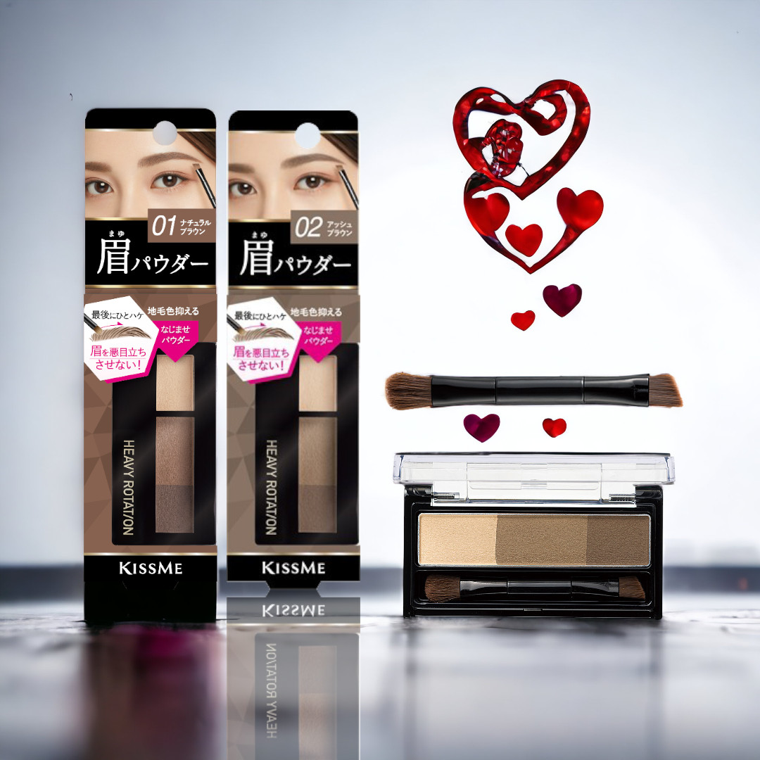 ✨Bột Kẻ Lông Mày Chống Trôi Màu Sắc Tự Nhiên Kissme Heavy Rotation (Hộp 3 Khay Màu)