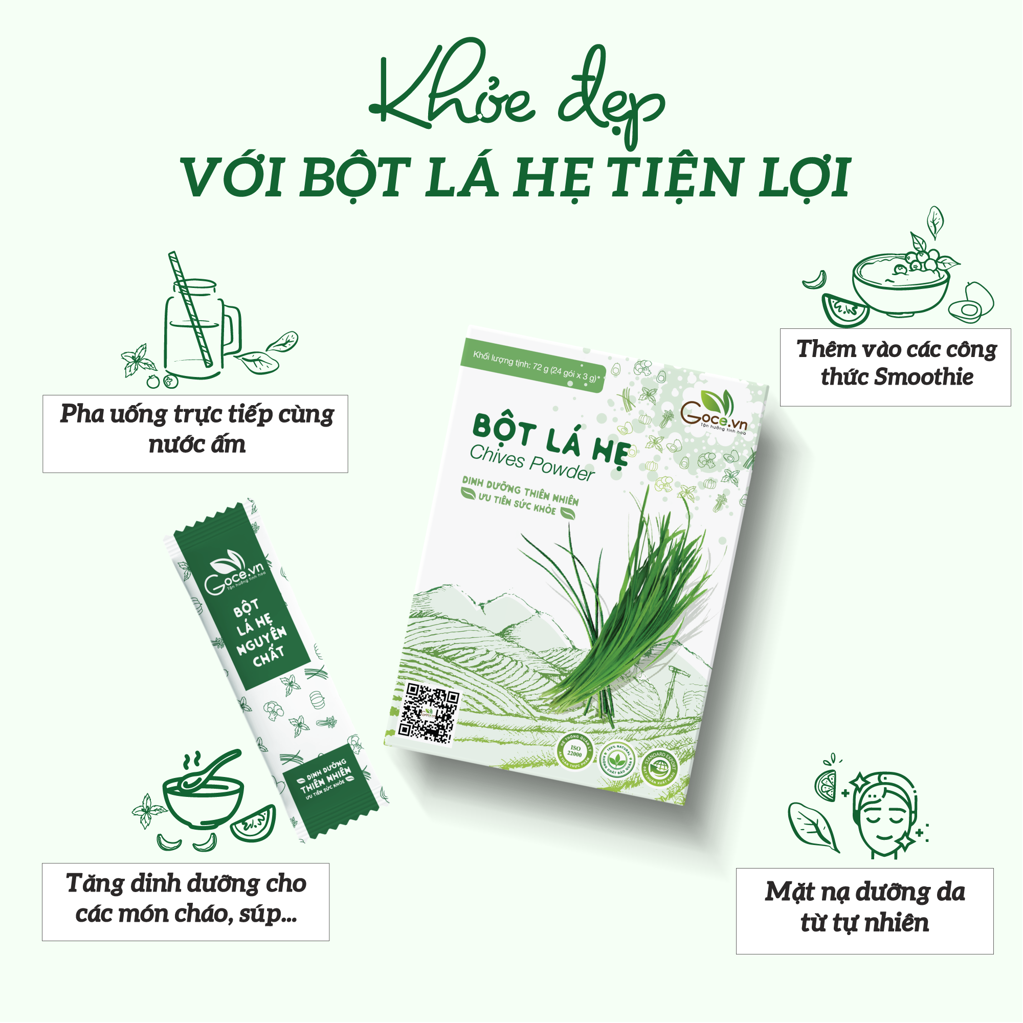 ✨Bột lá hẹ nguyên chất Goce - 72g (24 gói x 3g)