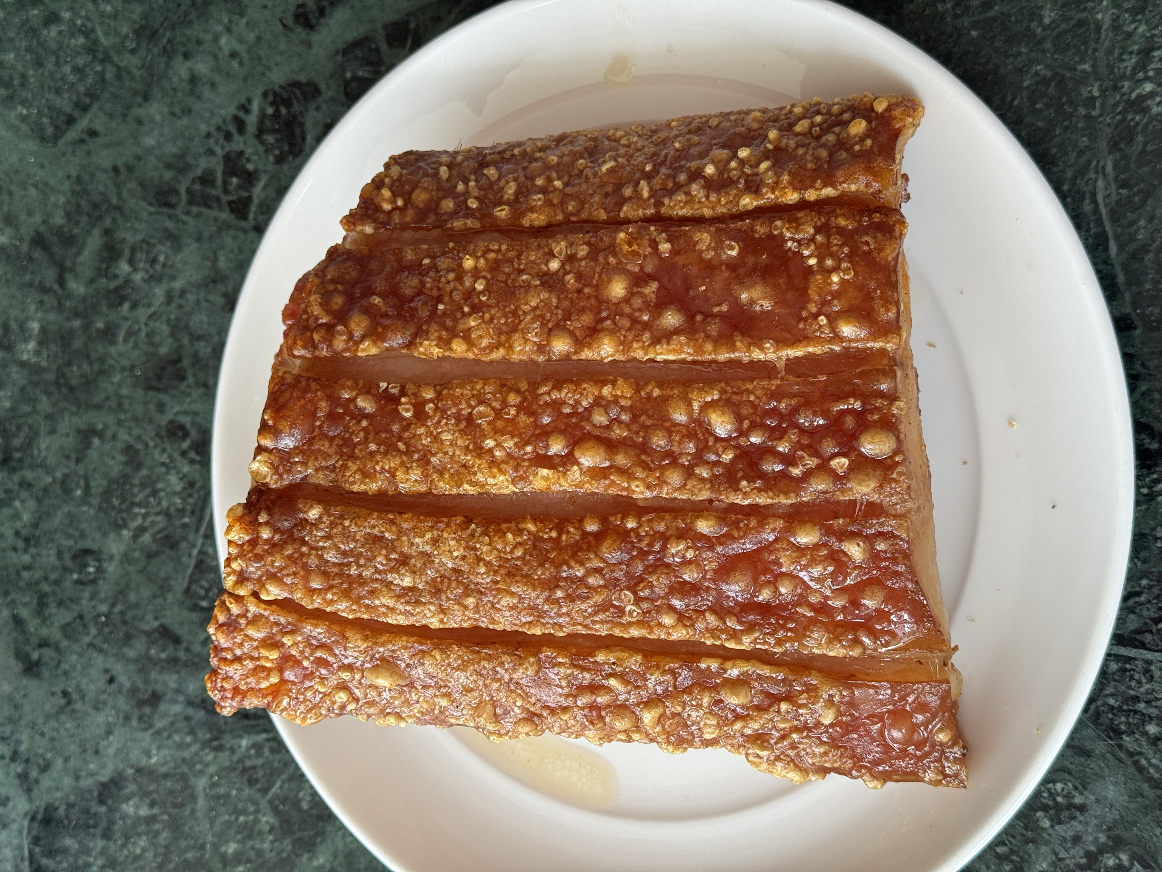 Quay da bóng giòn màu đẹp thì lấy Bột nổ pha với Giấm Đa Dụng Hòa Ký ; xâm đều bề mặt da, rồi quét đều vùng da cần nổ giòn, để 1– 2 tiếng hong gió ( tùy miếng thịt nhỏ lớn), sau đó quay nướng.