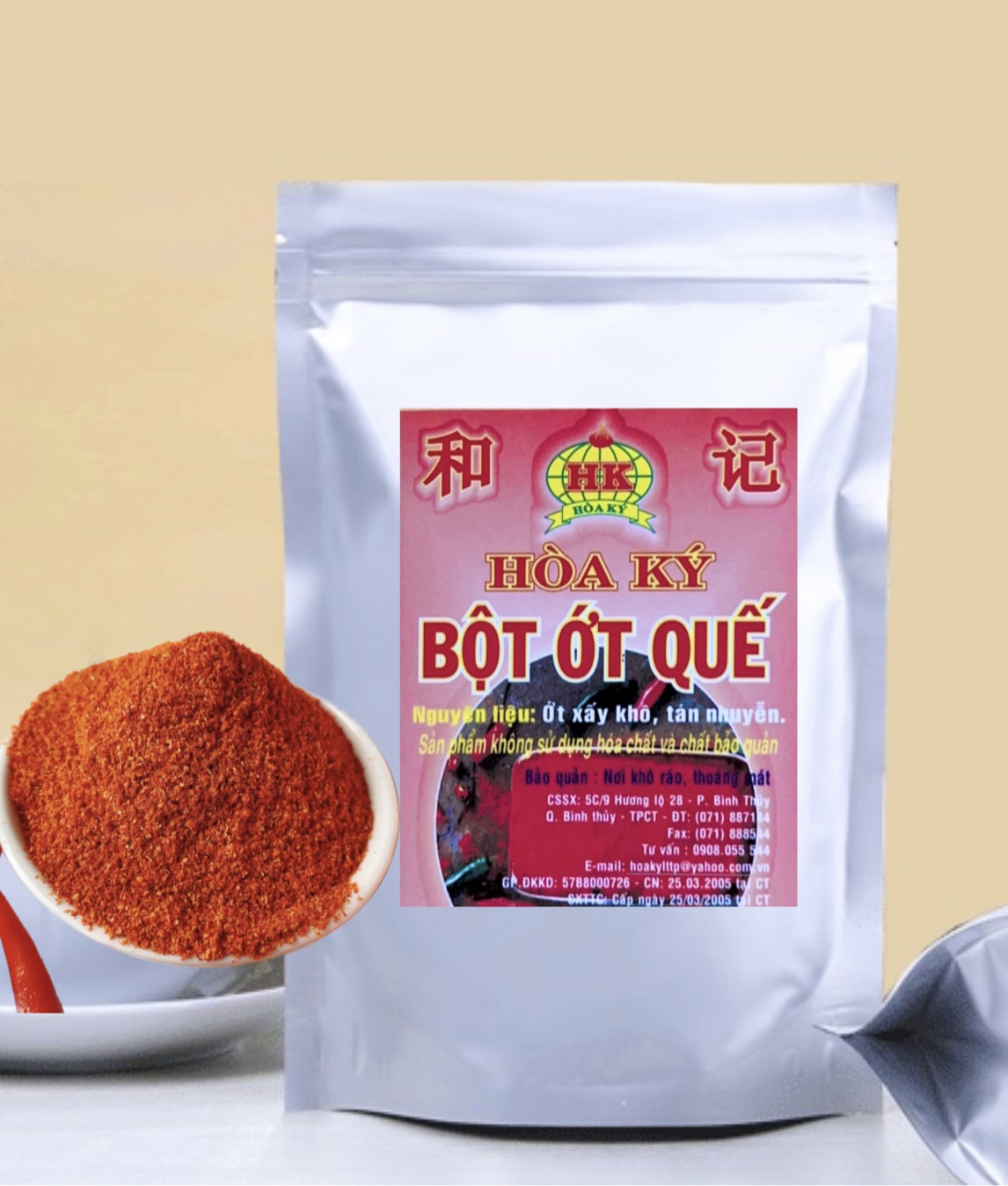 Bột ớt Ớt nguyên chất sấy khô rồi nghiền thành bột. Dùng nấu lẩu cay, ướp các món cần vị cay. Dùng để nấu cari, bún bò huế, làm sa tế, tương ớt …
