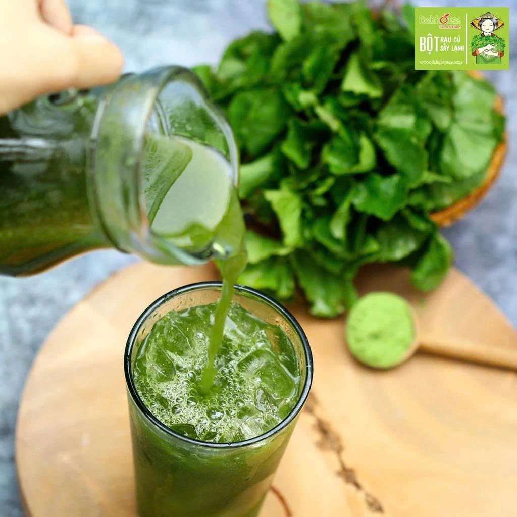 - Công dụng: 1 thìa cafe bột rau má (~3gr) = 2 chén rau má tươi (~60gr)