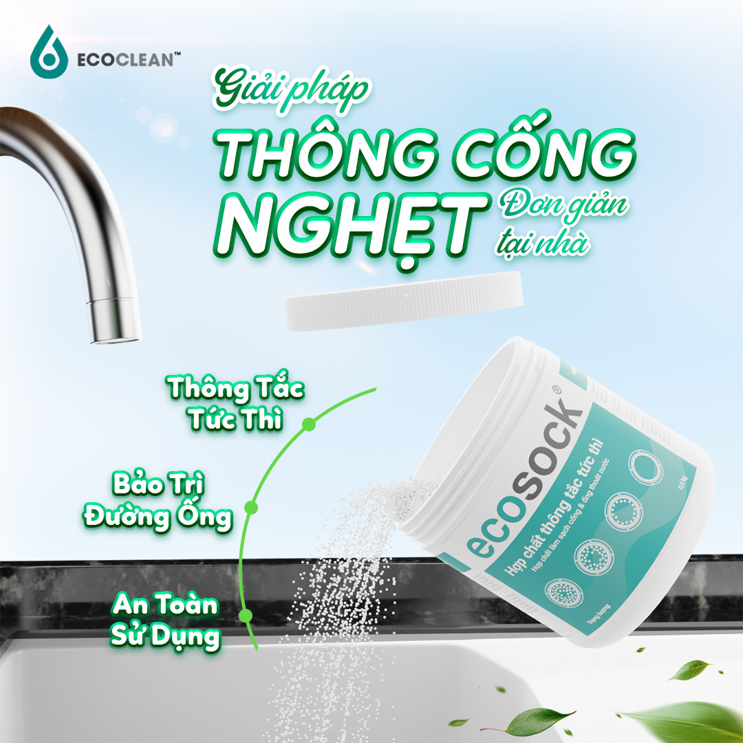 Bột Thông Tắc Cống, Đường Ống - EcoSock Hộp 0.5Kg - Hàng Chính Hãng Từ Mỹ1. Xử lý tắc bồn rửa bátVới khả năng đánh bay dầu mỡ, vụn thực phẩm và rác hữu cơ nhanh chóng nên EcoSock là sản phẩm thông ...