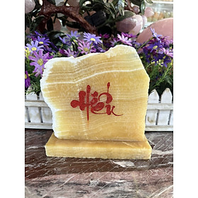 ✨Bức tranh chạm khắc chữ thư pháp trên đá ngọc hoàng long trang trí bàn làm việc, phòng khách