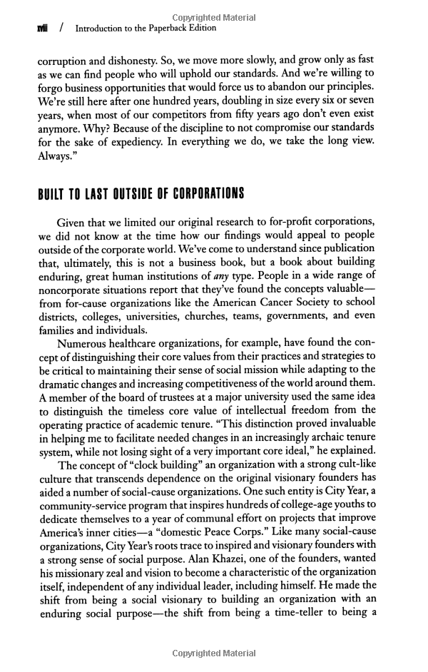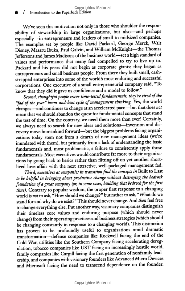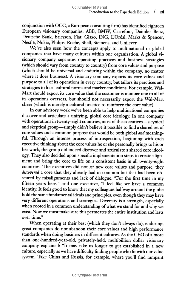 "This is not a book about charismatic visionary leaders. It is not about visionary product concepts or visionary products or visionary market insights. Nor is it about just having a corporate vision. This is a
