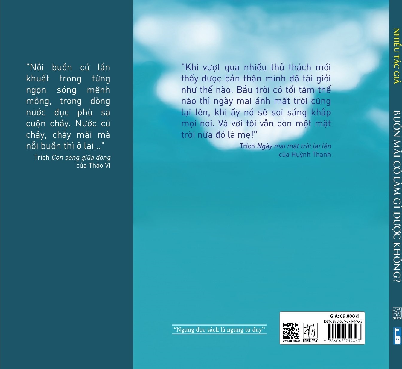 Đừng Khóc Không Sao Mà “ĐỪNG KHÓC, KHÔNG SAO MÀ!” Một lời an ủi động viên, một câu nói khích lệ tinh thần khi bạn đang mệt nhoài với những ngày tháng đầy rẫy đau thương, có một người đến bên cạnh vỗ vai và dịu dàng an ủi “Chúng ta rồi sẽ ổn thôi. đừng khóc không sao mà!”. Chỉ một câu ngắn gọn mà khiến bạn ấm lòng, có thêm niềm tin tìm cách giữ thăng bằng trong những ngày tháng chênh vênh. Nhưng cũng có lúc, lời an ủi đó tựa một chiếc dây xích tạo áp lực khủng khiếp, bạn phải gồng mình chống lại sự yếu đuối chỉ chực chờ bung trào, phải cố gắng tỏ ra là "tôi vẫn ổn" để không làm thất vọng mọi người xung quanh. Và kết quả là, bạn đã cố gắng đến độ kiệt sức và buông xuôi, tự giải thoát mình. Nhưng sau những điều tồi tệ thì vẫn đúng là... MỌI CHUYỆN RỒI CŨNG SẼ ỔN thôi… Đó cũng chính là thông điệp trong cuốn “Đừng khóc, không sao mà” muốn nhắn gửi đến tất cả chúng ta. Sau những chuyện tồi tệ, thì cuộc sống sẽ trở về trạng thái cân bằng. Đôi lúc, một vài thứ xảy ra giống như sóng để chúng ta biết dừng lại nghỉ ngơi, cho mình yếu đuối một chút, cần dựa dẫm một chút… Để khi nhìn lại những thứ tưởng có thể nhấn chìm mình hoá ra lại “nhẹ nhàng” đến thế. Dù có nhiều cơn ác mộng thế nào, thời gian vẫn trôi, mặt trời vẫn mọc, gió vẫn thổi và ngày cứ thế mà hết sáng lại đêm. Nhưng rõ ràng, để đi đến được cảm giác nhẹ nhàng đó là một chặng đường dài đầy khó khăn, và thứ mỗi chúng ta cần, không gì khác ngoài một trái tim tràn đầy niềm tin rằng “Phía bên kia, là chân trời bạn mong, thanh thản, an yên, không có đau lòng, không có tiêu cực…” Khép lại những trang trong cuốn sách này mong bạn hãy bỏ lại cái tôi đầy thương tích cùng vết thương lòng nặng trĩu để kiếm tìm lại bình yên, vun vén lại thứ hạnh phúc bạn đánh mất!