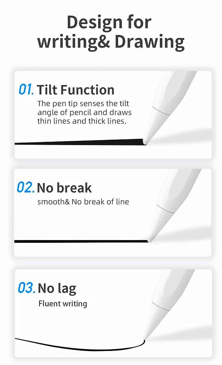 Bút cảm ứng stylus thông minh đầu bút siêu mịn mượt hiệu WIWU Pencil Pro cho iPad Pro và các dòng iPad / iPad Mini từ đời 2018 trở lên hỗ trợ viết vẽ nghiêng