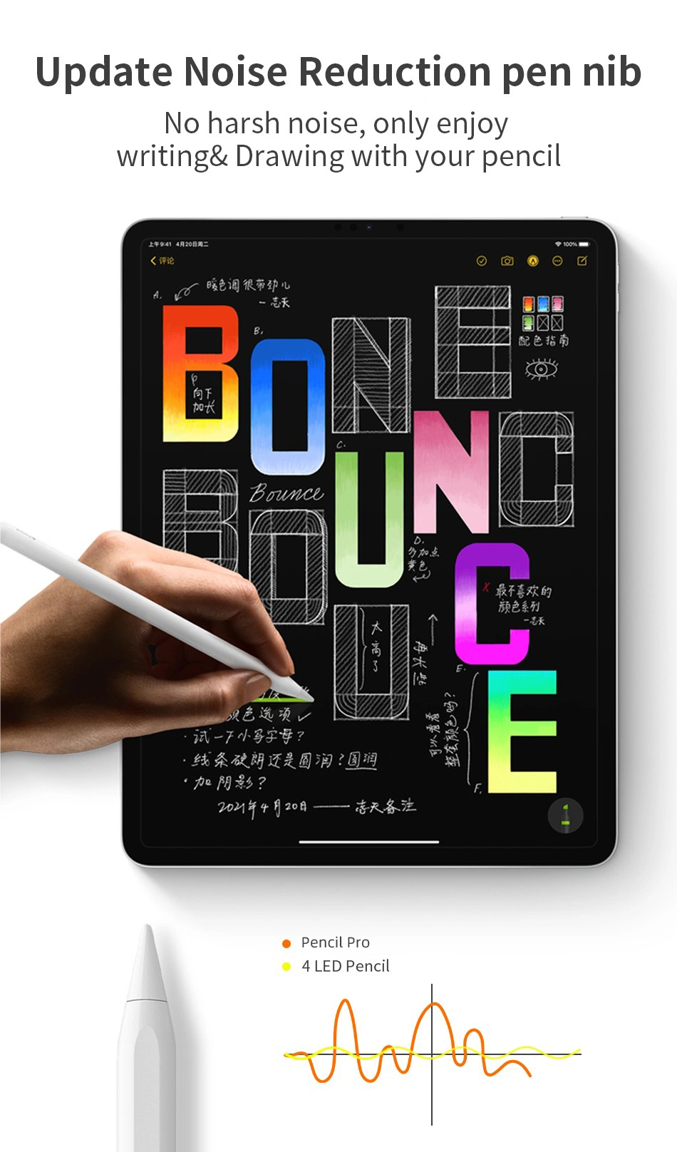 Hợp kim nhôm + Sợi dẫn điện Pin Lithium có thể sạc lại, 80mAh Sạc nhanh loại C trong 2 giờ, sử dụng trong 8 giờ Đặc điểm: * Pencil pro là mẫu mới nhất
