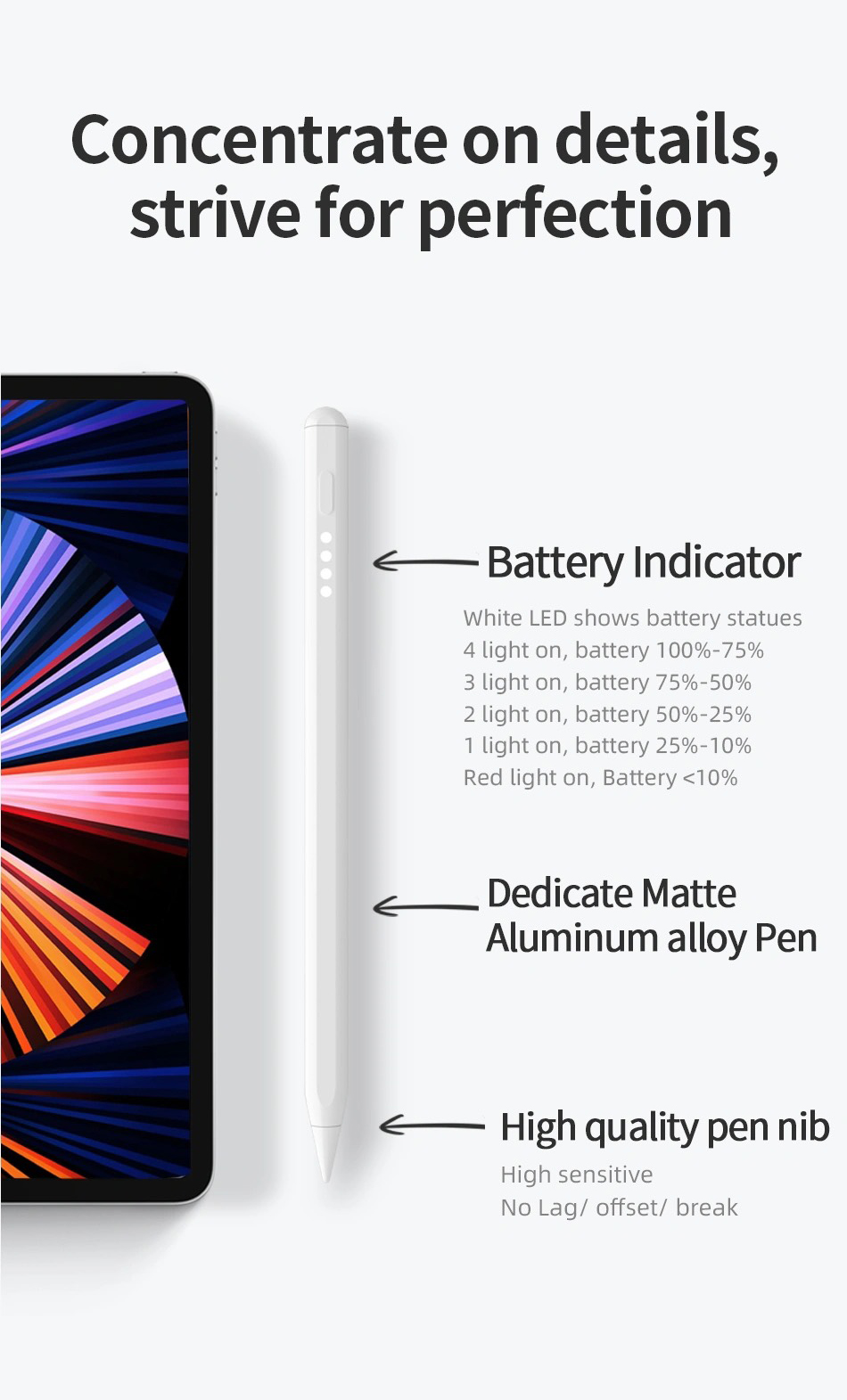 Được thiết kế cho các mẫu iPad 2018-2024 Bút cảm ứng cho iPad hỗ trợ cho các mẫu iPad series 2018-2024: iPad thế hệ thứ 6/7/8/9, iPad Air thế hệ thứ 3/4/5, iPad Pro 11/12,9