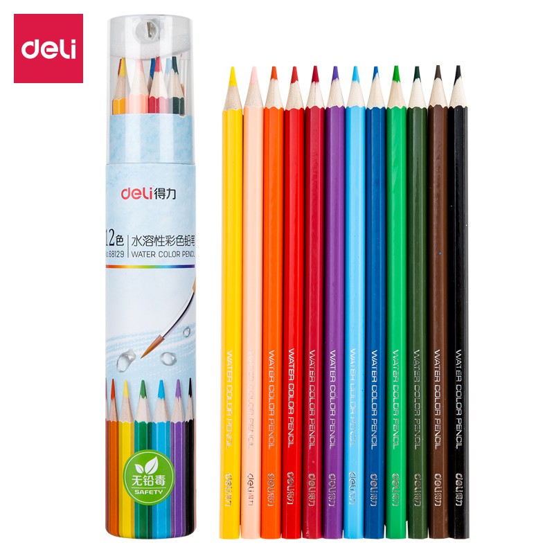 Hộp Tròn 12 Bút Chì Màu Deli EC112-12 12 bút chì màu được bảo quản trong hộp tròn có nắp đậy trong suốt, giúp bé có thể dễ dàng quan sát màu bên trong và