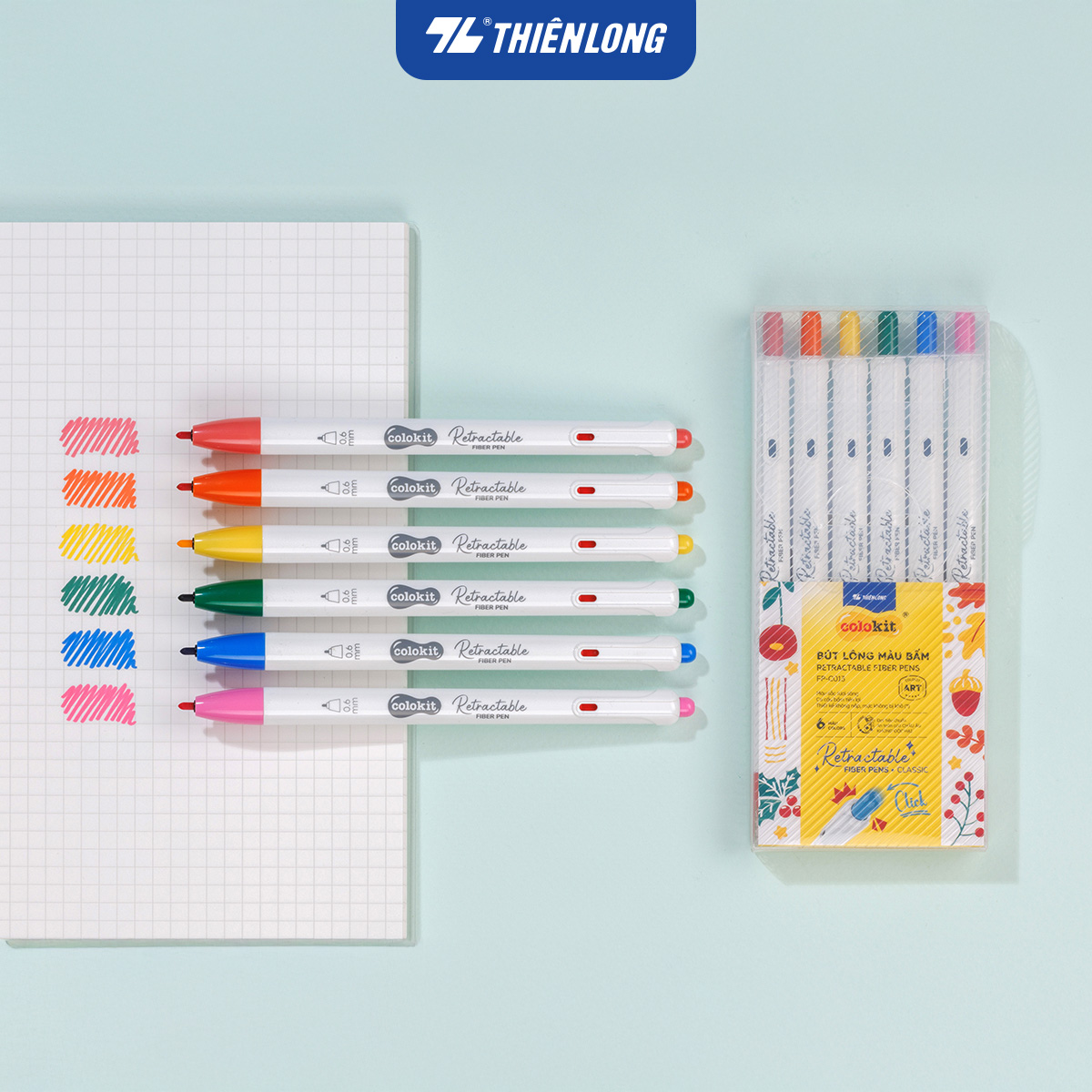 ✨Bút lông 6/12 màu dạng bấm Retractable Fiber Pens Classic/Kawaii Thiên Long Colokit - 0.6mm