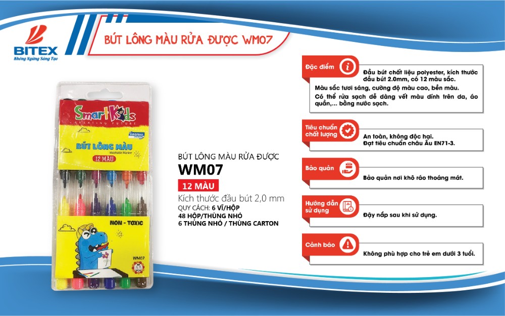✨Bút lông màu rửa được Smartkids WM07 (12 màu/vỉ)
