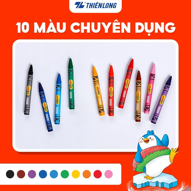 Thương hiệu: Colokit - Thiên Long Đường kính sáp: 8.25 mm Chiều dài sáp: 73 mm Tiêu chuẩn: TCCS 21:2018/TL-BSD; tiêu chuẩn châu Âu EN 71/3 Xuất xứ: Việt Nam
