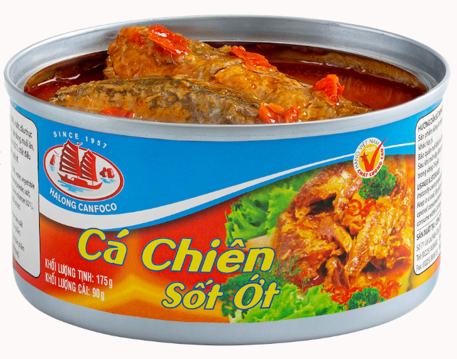 Cá chiên sốt ớt Halong Canfoco được làm từ những con cá tươi ngon, được chiên vàng giòn, sau đó thấm đẫm trong nước sốt ớt cay nồng, đậm đà.