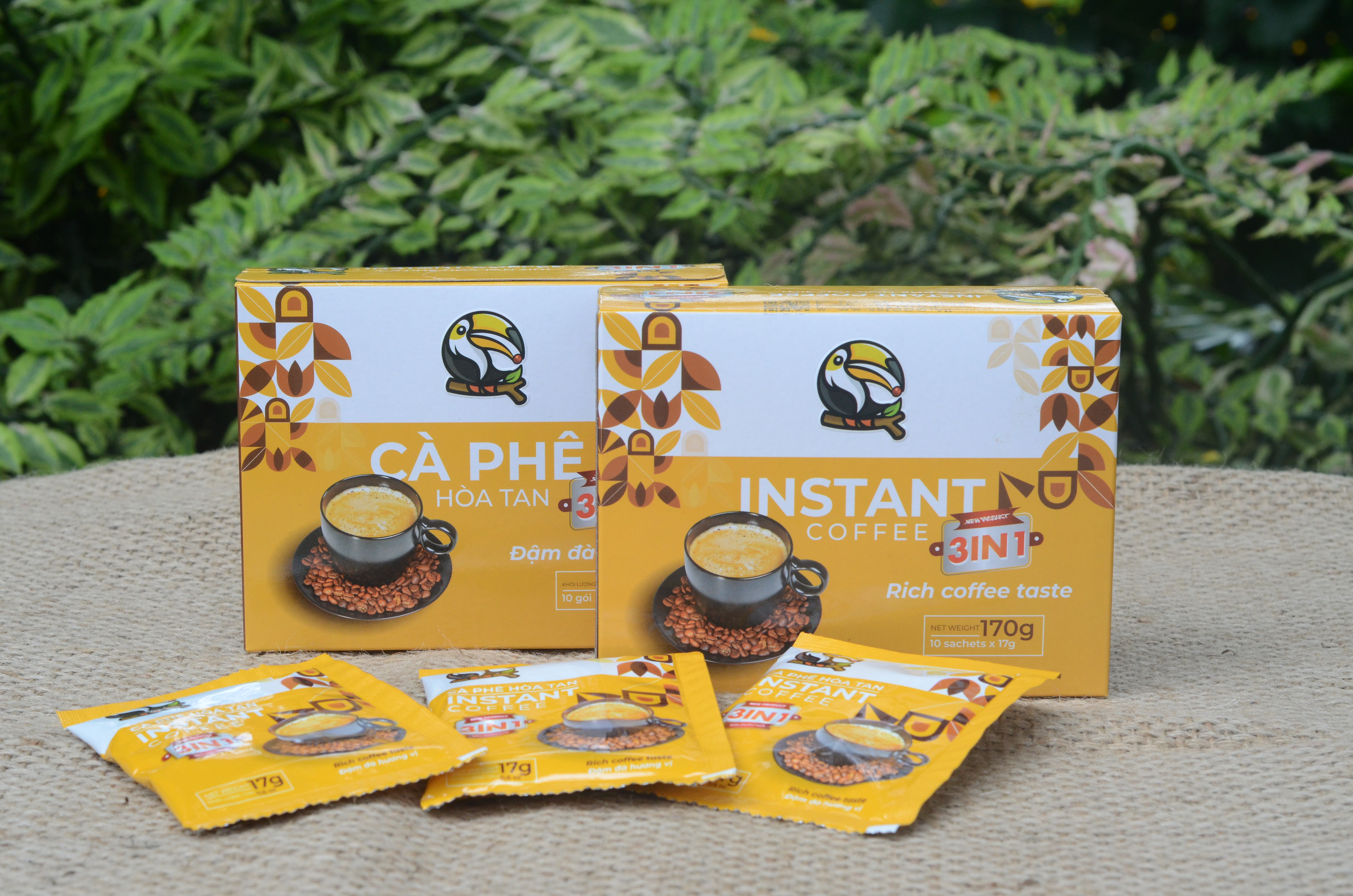 CÀ PHÊ HÒA TAN 3in1 – HỘP 170G: - Xuất xứ: Việt Nam - Thành phần: Đường, bột kem thực vật, cà phê hòa tan (13%) - Quy cách đóng gói: 10 gói x 17g/gói