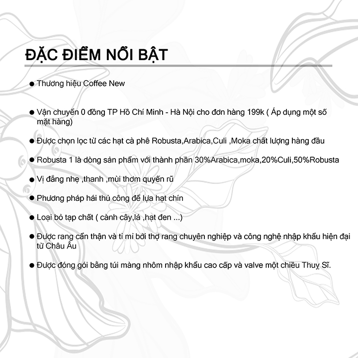 Được chọn lọc từ những hạt cà phê Robusta chín mọng cùng thổ nhưỡng khác biệt trên cao nguyên Buôn Ma Thuột. Quy trình chế biến ướt thủ công kết hợp công nghệ rang xay hiện đại, tạo nên sản phẩm thơm ngon thượng hạng.