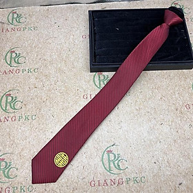 ✨Cà vạt nam chú rể màu đỏ trầm song Hỷ vàng tròn mẫu 6cm dây kéo thắt sẵn màu đỏ trầm kẻ ánh