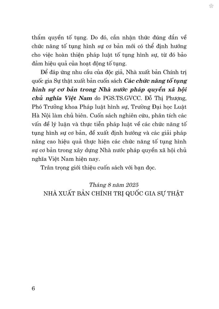 ✨Các chức năng tố tụng hình sự cơ bản trong nhà nước pháp quyền xã hội chủ nghĩa Việt Nam (Sách chuyên khảo)