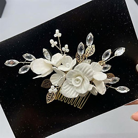 ✨Cài tóc cô dâu hoa đất sét trắng có sẵn xược cài mã 005 - 14cm