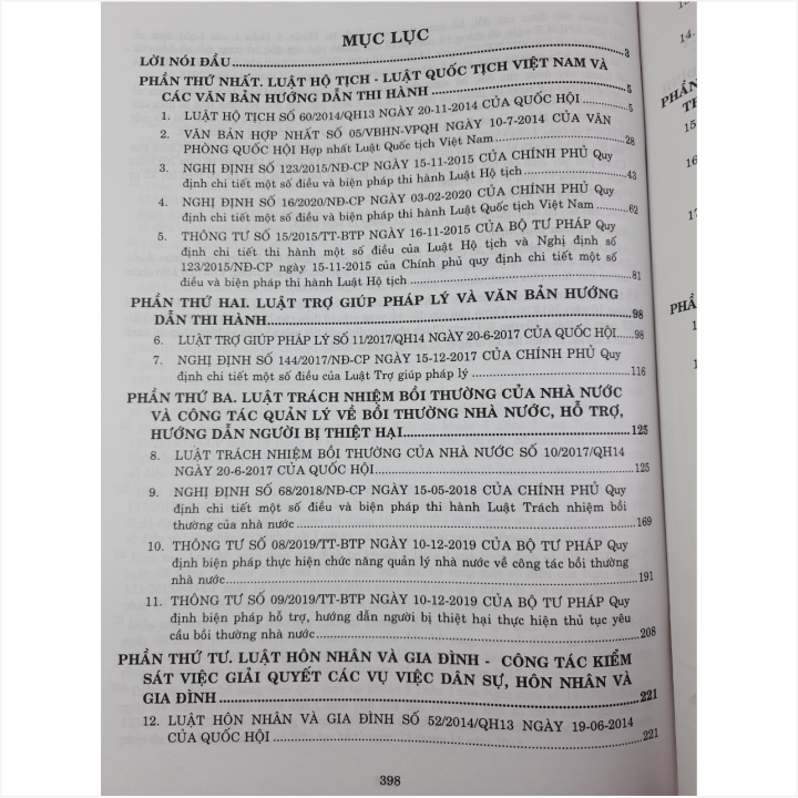 - Toàn bộ sách bìa mềm khổ lớn 20 x 28 cm phân phối bởi Nhà sách Nam Việt đều được bọc sách Plastic MIỄN PHÍ và xuất hóa đơn điện tử đầy đủ, nhanh chóng. …/… Trong cuốn sách này đã cập nhật các Thông tư và Nghị định như: - Nghị định số 16/2020/NĐ-CP ngày 03-02-2020 Quy định chi tiết một số điều và biện pháp thi hành Luật Quốc tịch Việt Nam; - Thông tư số 08/2019/TT-BTP ngày 10-12-2019 Quy định biện pháp thực hiện chức năng quản lý nhà nước về công tác bồi thường nhà nước; - Thông tư số 09/2019/TT-BTP ngày 10-12-2019 Quy định biện pháp hỗ trợ, hướng dẫn người bị thiệt hại thực hiện thủ tục yêu cầu bồi thường nhà nước; - Hướng dẫn số 02/HD-VKSTC ngày 02-01-2020 Công tác kiểm sát việc giải quyết các vụ việc dân sự, hôn nhân và gia đình năm 2020; - Nghị định số 19/2019/NĐ-CP ngày 19-02-2019 Về họ, hụi, biêu, phường; - Thông tư số 07/2019/TT-BTP ngày 25-11-2019 Hướng dẫn một số nội dung về đăng ký thế chấp quyền sử dụng đất, tài sản gắn liền với đất; - Thông tư số 01/2020/TT-BTP ngày 03-3-2020 Quy định chi tiết và hướng dẫn thi hành một số điều của Nghị định số 23/2015/NĐ-CP ngày 16-02-2015 về cấp bản sao từ sổ gốc, chứng thực bản sao từ bản chính, chứng thực chữ ký và chứng thực hợp đồng, giao dịch;… Nhằm phổ biến đến Quý Cơ quan, Đơn vị và Quý khách hàng thân thiết nắm bắt kịp thời những quy định mới nêu trên. Nhà sách Nam Việt xin trân trọng giới thiệu cuốn sách: CẨM NANG NGHIỆP VỤ DÀNH CHO CÁN BỘ TƯ PHÁP, VĂN PHÒNG LUẬT SƯ & TRỢ GIÚP PHÁP LÝ – QUY ĐỊNH MỚI VỀ HOẠT ĐỘNG TƯ PHÁP TRONG LĨNH VỰC DÂN SỰ, HÀNH CHÍNH, HỘ TỊCH, HỘ KHẨU, HÔN NHÂN và GIA ĐÌNH. ...//... Nội dung sách gồm 6 phần sau đây: Phần I. Tìm hiểu Luật Hộ tịch - Luật Quốc tịch Việt Nam và các văn bản hướng dẫn thi hành mới nhất Phần II. Tìm hiểu Luật Trợ giúp pháp lý và các văn bản hướng dẫn thi hành mới nhất Phần III. Tìm hiểu Luật Trách nhiệm bồi thường của nhà nước và công tác quản lý về bồi thường nhà nước, hỗ trợ, hướng dẫn người bị thiệt hại Phần IV. Tìm hiểu Luật Hôn nhân và gia đình - Công tác kiểm sát việc giải quyết các vụ việc dân sự, hôn nhân và gia đình Phần V. Công tác về quản lý hoạt động tư pháp trong lĩnh vực dân sự, hành chính, chứng thực Phần VI. Tìm hiểu Luật Luật sư và các văn bản hướng dẫn thi hành mới nhất ...//... Cảm ơn các bạn đã ghé thăm shop Nhà sách Nam Việt ! Cẩm Nang Nghiệp Vụ Dành Cho Cán Bộ Tư Pháp, Văn Phòng Luật Sư và Trợ Giúp Pháp Lý – Quy Định Mới về Hoạt Động Tư Pháp Trong Lĩnh Vực Dân Sự, Hành Chính, Hộ Tịch, Hộ Khẩu, Hôn Nhân và Gia Đình Cẩm Nang Nghiệp Vụ Dành Cho Cán Bộ Tư Pháp, Văn Phòng Luật Sư và Trợ Giúp Pháp Lý – Quy Định Mới về Hoạt Động Tư Pháp Trong Lĩnh Vực Dân Sự, Hành Chính, Hộ Tịch, Hộ Khẩu, Hôn Nhân và Gia Đình