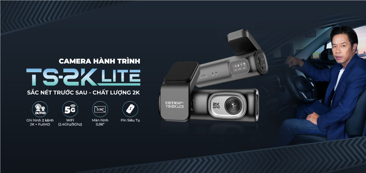 - Model: TS-2K Lite - Ghi hình 2 kênh trước sau, trước 2K, sau Full HD - Là dòng camera thuần ghi hình, không có cảnh báo giao thông bằng giọng nói Camera VIETMAP TS-2K
