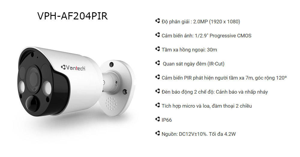 ✨Camera hồng ngoại cảm biến PIR AHD VPH-AF204PIR - Hàng chính hãng