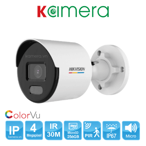 ✨Camera IP COLORVU Lite có màu ban đêm, hỗ trợ đèn sáng 30m, tích hợp micro, 4.0MP HIKVISION DS-2CD1047G0-LUF(C) (Hàng chính hãng)