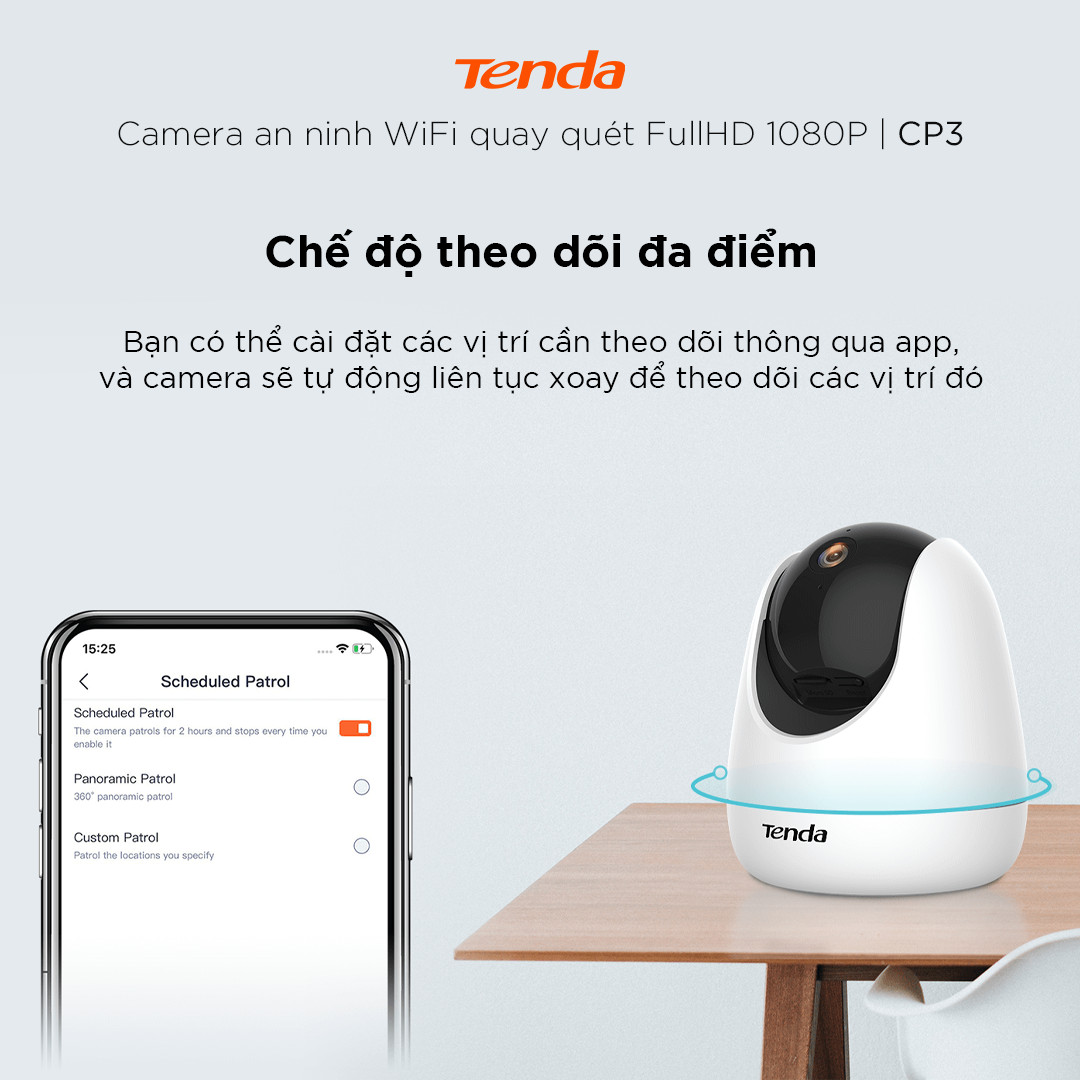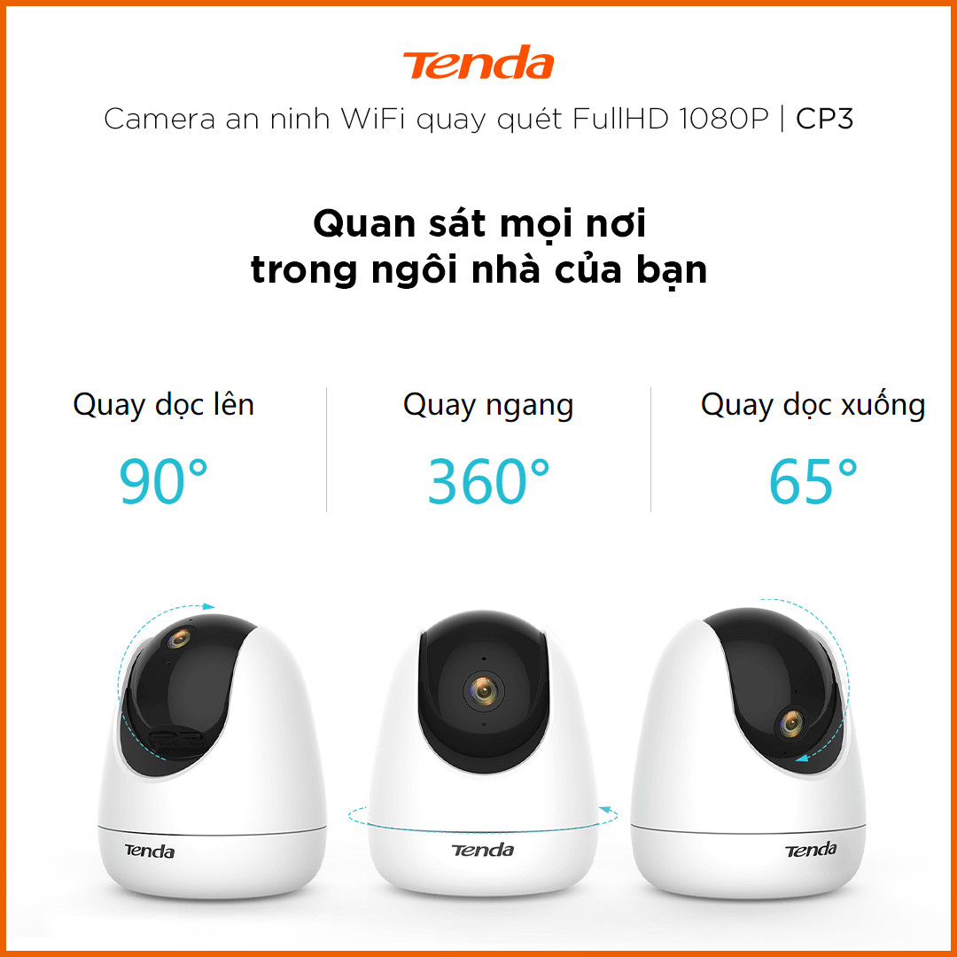 Tenda CP3 là camera WiFi quay quét cho gia đình, với khả năng quan sát toàn cảnh 360° và độ phân giải FullHD 1080P