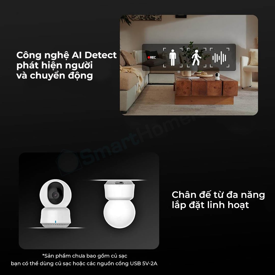 - Độ phân giải 3MP (2K – 2304×1296) cho hình ảnh chi tiết, sắc nét hơn Full HD - Góc quay linh hoạt 360° ngang, điều chỉnh dọc rộng – bao quát toàn bộ không gian - Phát hiện chuyển động thông minh, theo dõi tự động và cảnh báo tức thì - Tầm nhìn ban đêm bằng hồng ngoại lên tới 12 m – quan sát rõ cả trong bóng tối - Âm thanh hai chiều – vừa nghe vừa nói trực tiếp qua camera - Lưu trữ linh hoạt qua thẻ microSD lên tới 512 GB hoặc dịch vụ đám mây - Hỗ trợ điều khiển bằng giọng nói qua Alexa và Google Assistant - Kết nối Wi-Fi 2.4 GHz ổn định, dễ cài đặt và sử dụng - Thiết kế nhỏ gọn, phù hợp đặt bàn hoặc treo tường LƯU Ý KHI MUA HÀNG Cảm ơn quý khách đã quan tâm đến sản phẩm bên