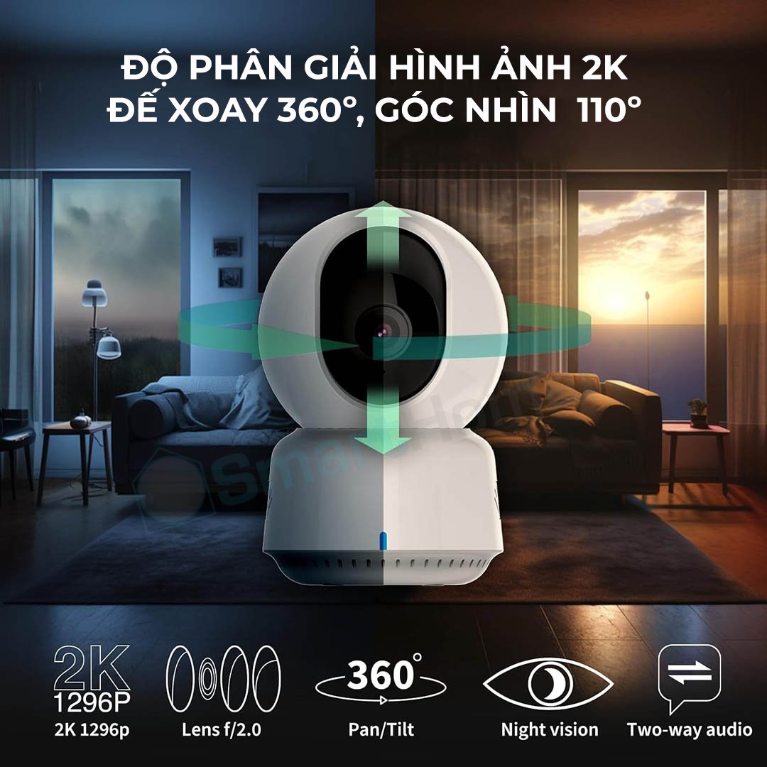 - Độ phân giải Full HD 1080p – mang đến hình ảnh rõ nét, chi tiết chân thực - Xoay 360° ngang, 114° dọc – dễ dàng quan sát toàn cảnh, không góc khuất -
