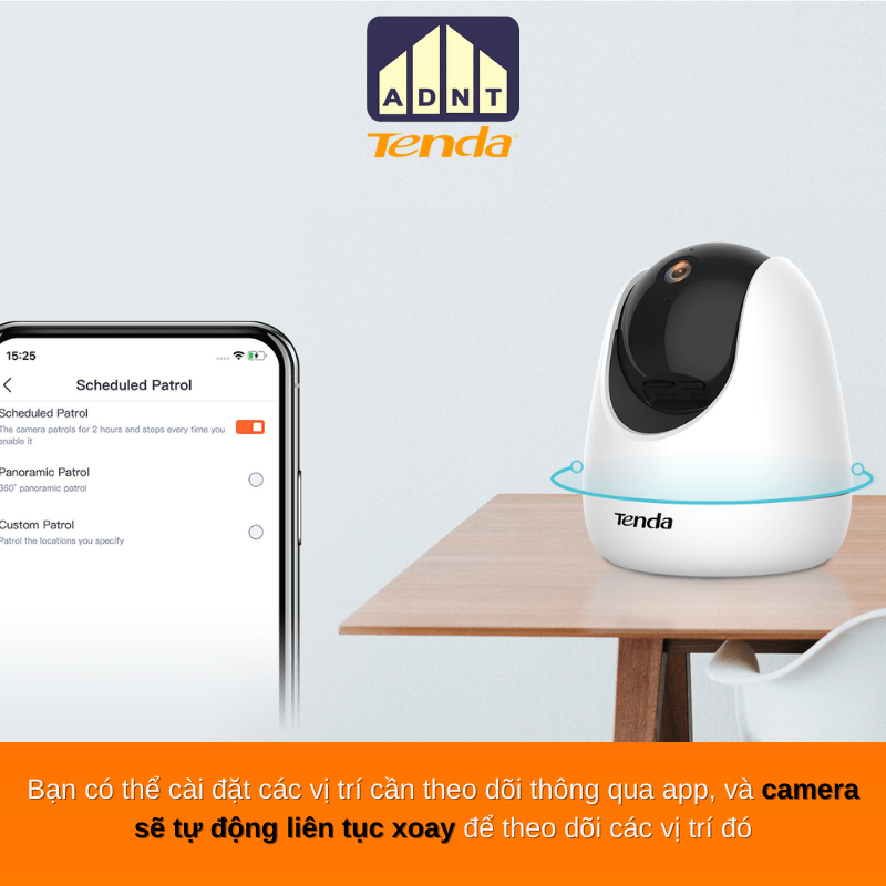 -Bạn có thể cài đặt các vị trí cần theo dõi thông qua app, và camera sẽ tự động liên tục xoay để theo dõi các vị trí đó.