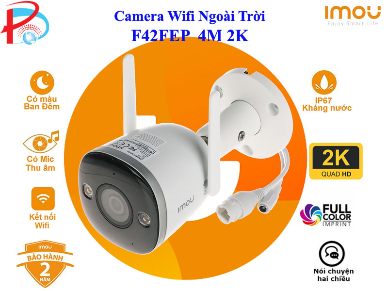 Camera IP wifi không dây IMOU F42FEP (4M 2K) Bullet 2 (SIÊU NÉT - CÒI HÚ BÁO ĐỘNG - MÀU BAN ĐÊM - ĐÈN SPOTLIGHT - ĐÀM THOẠI 2 CHIỀU)