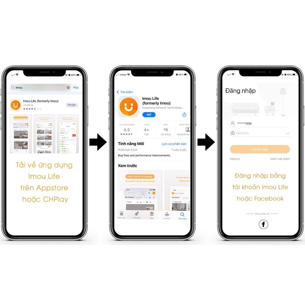 – Phần mềm sử dụng: iMou có sẵn trên AppStore và CHPlay.