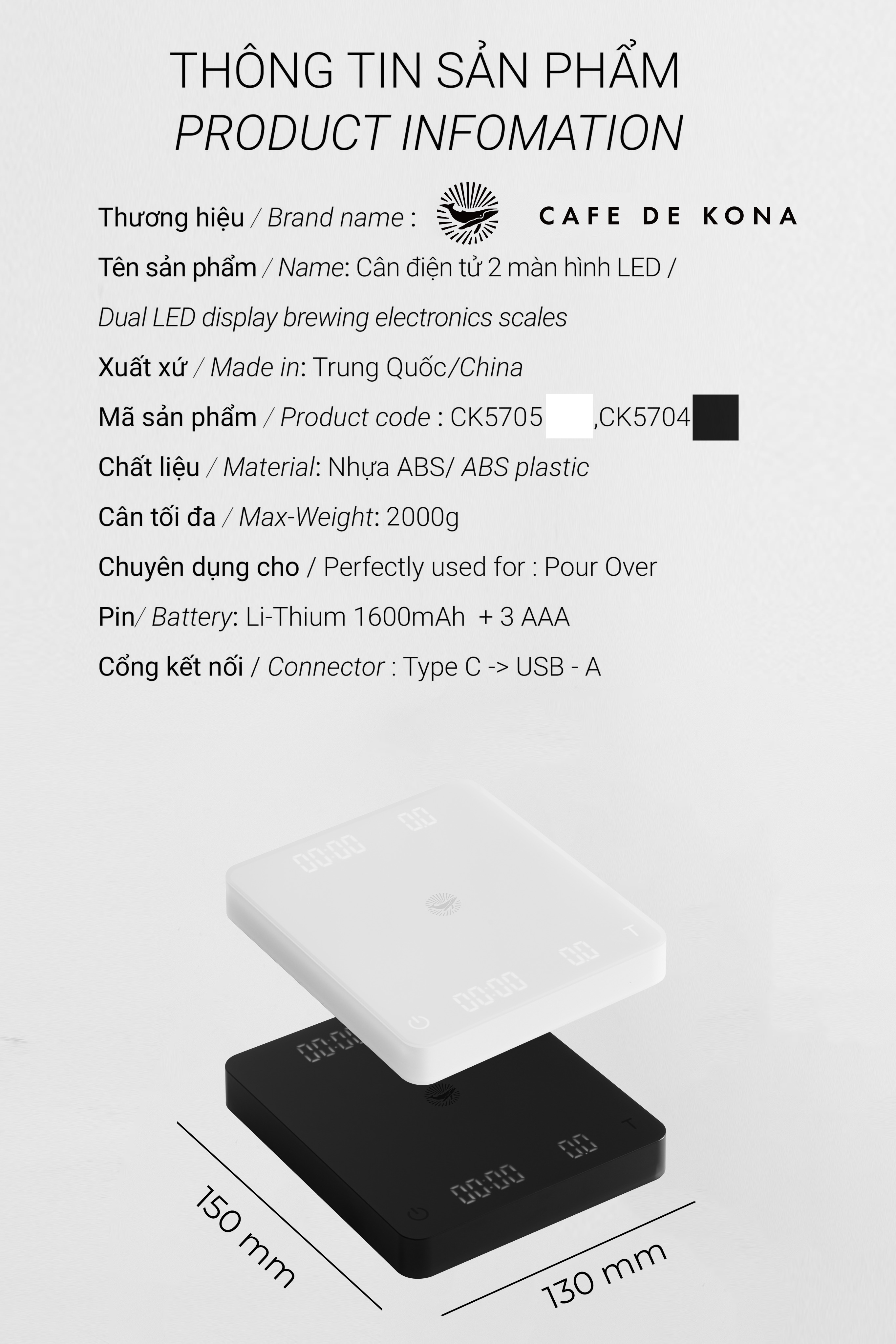 CÂN ĐIỆN TỬ PHA CÀ PHÊ - CAFE DE KONA