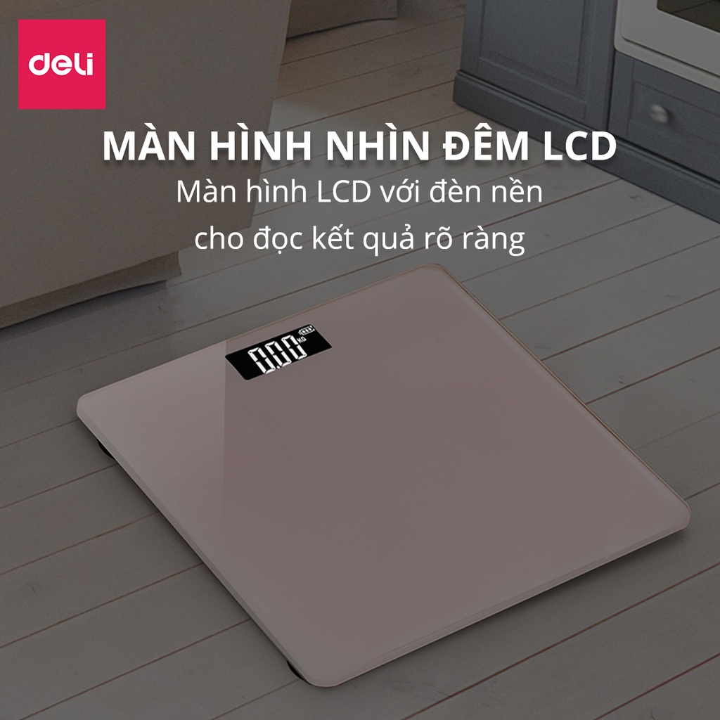 Cân Điện Tử Sức Khỏe Deli Chịu Tải 180kg Màn Hình LED Mặt Kính Cường Lực