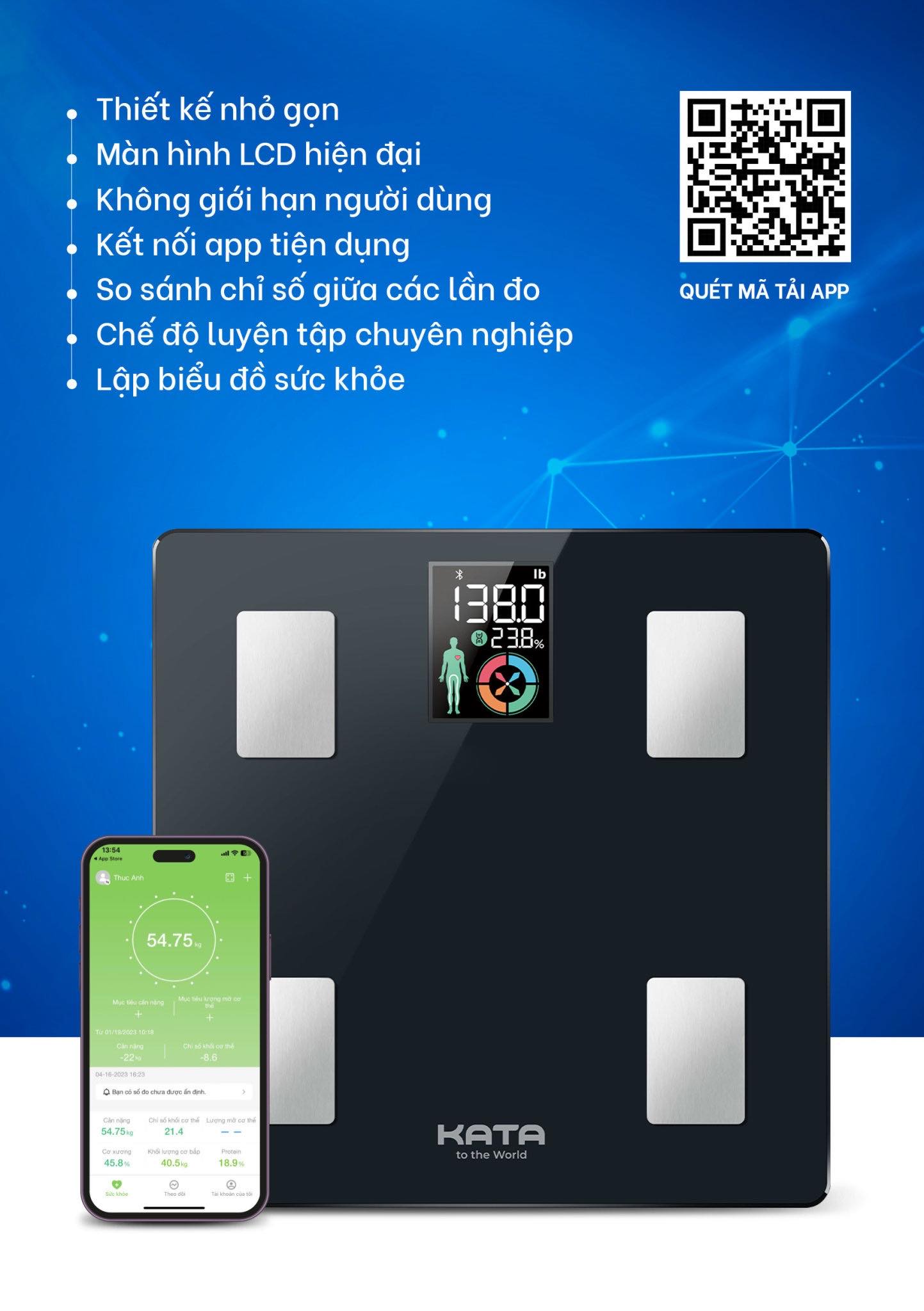 ✨Cân sức khỏe thông minh KATA CS20M Full Tiếng Việt cân đo, theo dõi chỉ số sức khỏe của cả gia đình,trẻ nhỏ