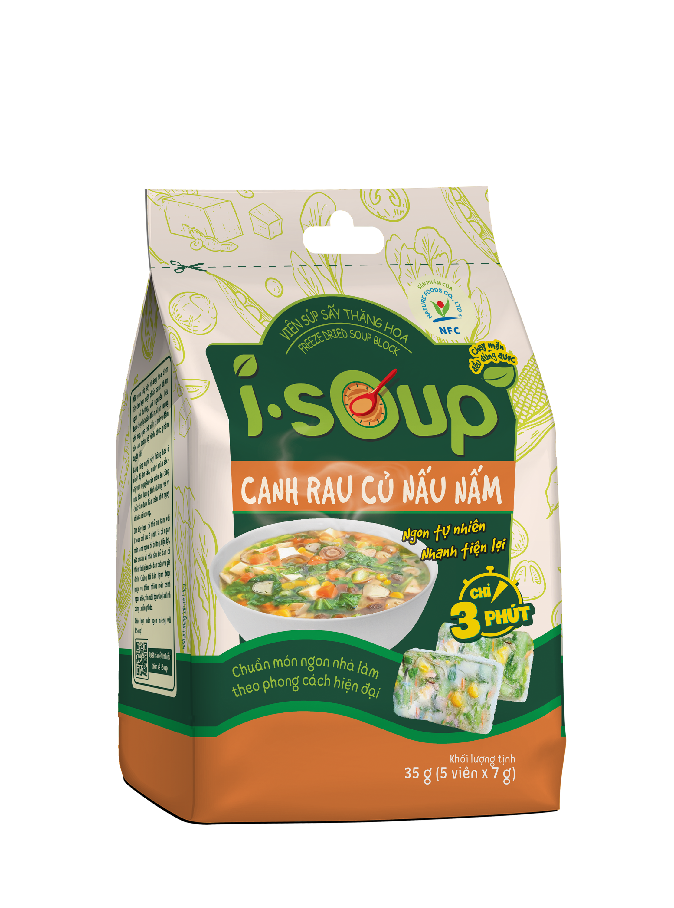 Canh rau củ nấu nấm ăn liền I-Soup 35g 05 viên NFC