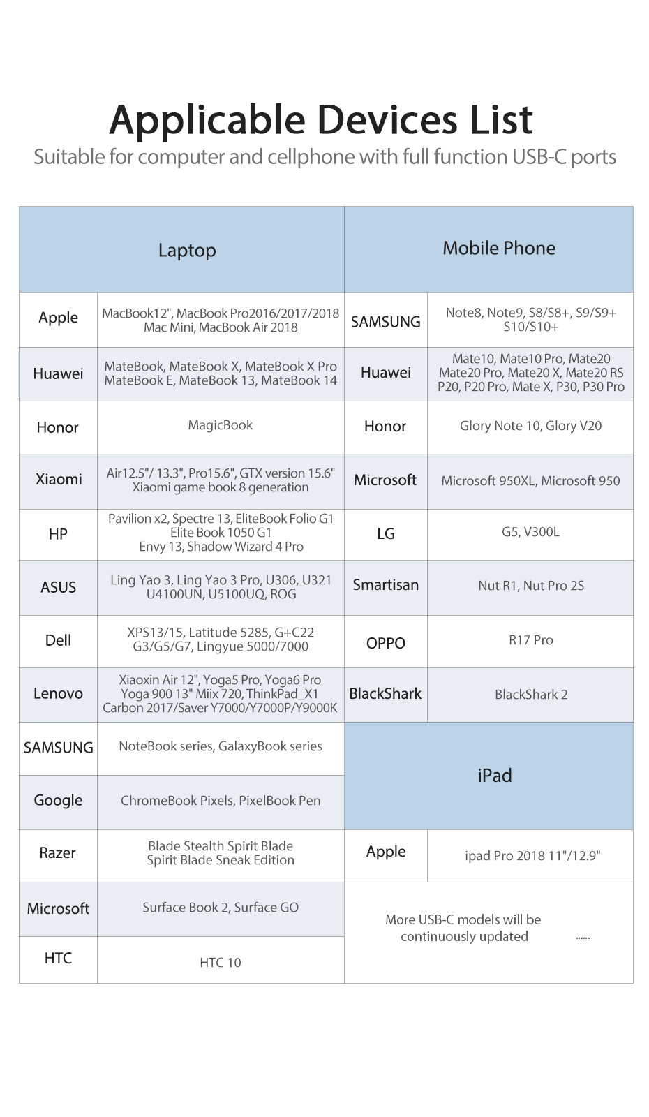 Tín hiệu đầu vào USB Type C Tín hiệu đầu ra HDMI/ USB 3.0 x 3/ Type-C PD Độ dài cáp 15cm Độ phân giải Hỗ trợ full HD, 2k, 4k Hỗ trợ Windows 7/8/10, Macbook, Mobile...