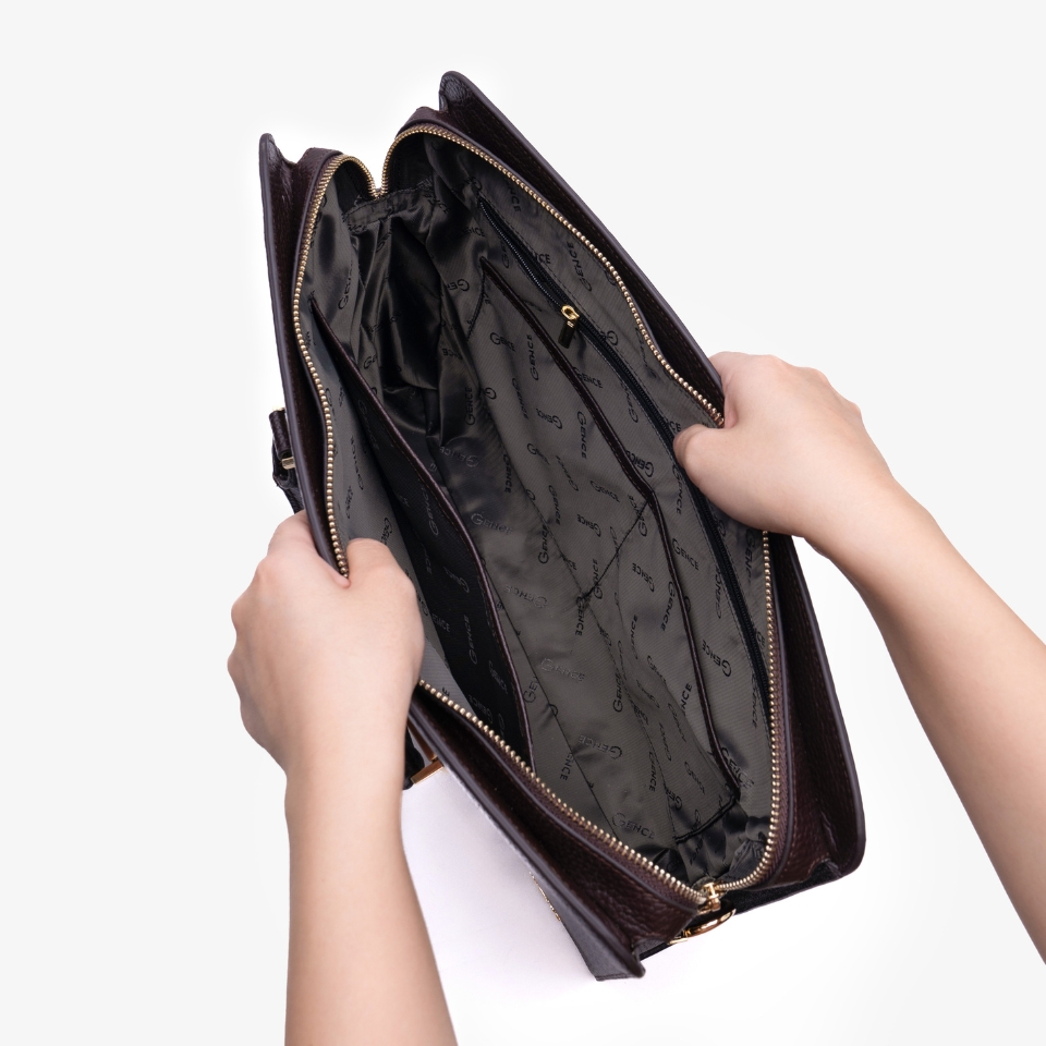 ✨Cặp Da Doanh Nhân Túi Xách Công Sở GENCE CTS13 Da Bò Khóa Số Cao Cấp Màu Nâu