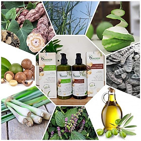 Thành phần: Chiết xuất từ cỏ màn trầu, chiết xuất bồ kết, hà thủ ô, dầu macadamia, tinh dầu bưởi, tinh dầu gừng, tinh dầu tràm trà, tinh dầu bạc hà, tinh dầu sả chanh, dầu argan, dầu thầu dầu, dầu ...