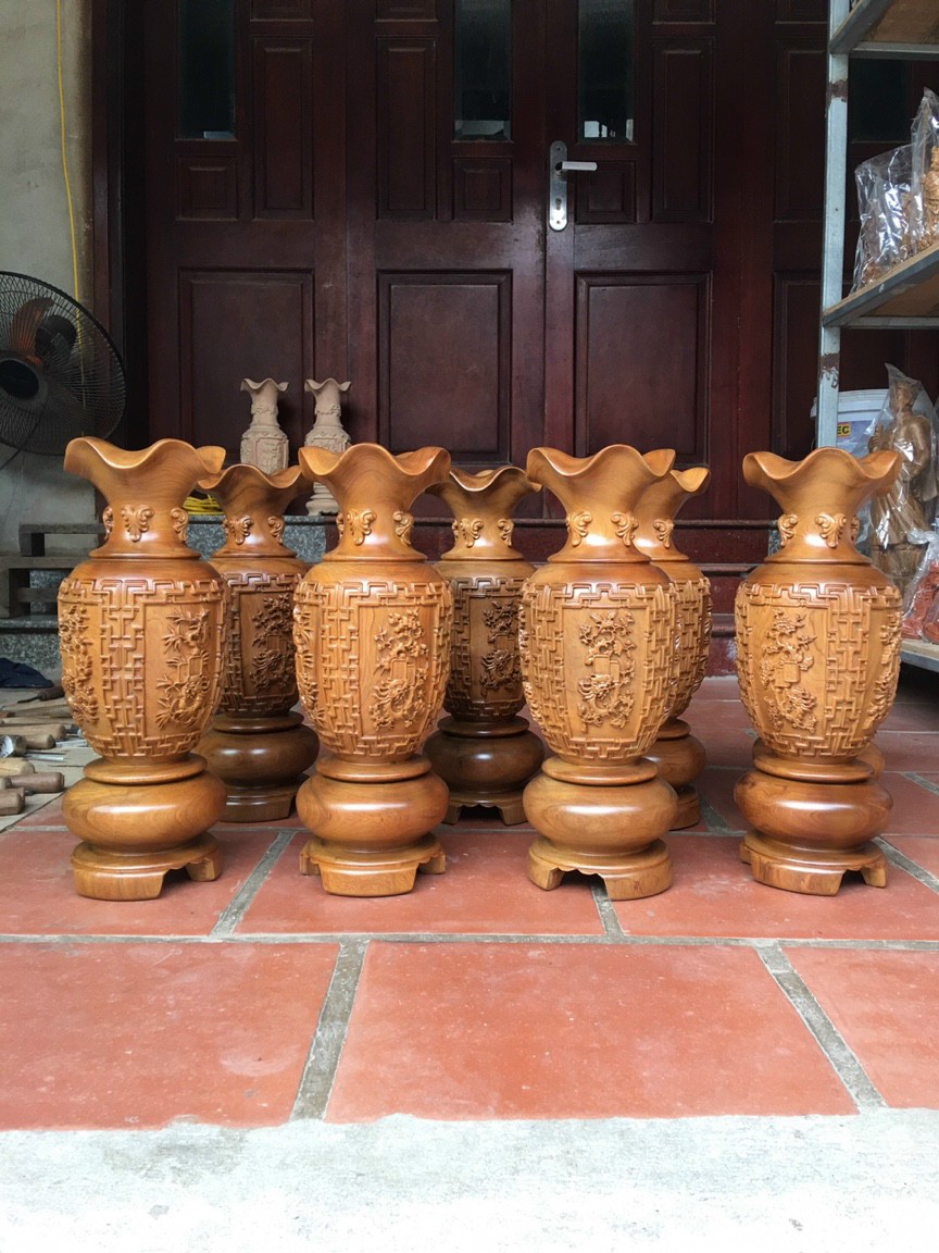 Cặp Bình Gỗ nu gõ hay gõ vẽ nu cao tròn đều đẹp cao 60cm x đk 20cm ý nghĩa bình an , phú quý Anh Chị trưng phòng khách nhà, công ty, bàn thờ
