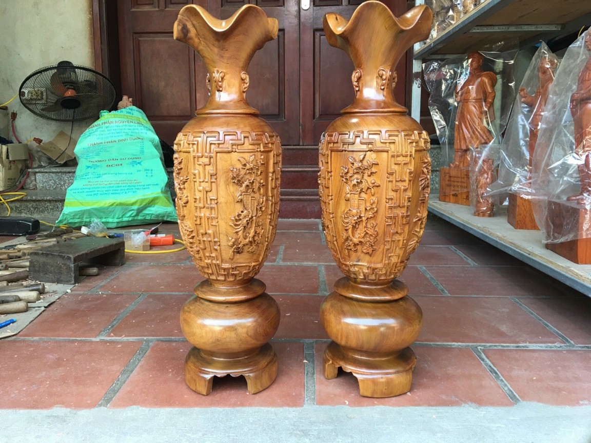 Cặp Bình Gỗ nu gõ hay gõ vẽ nu cao tròn đều đẹp cao 60cm x đk 20cm ý nghĩa bình an , phú quý Anh Chị trưng phòng khách nhà, công ty, bàn thờ