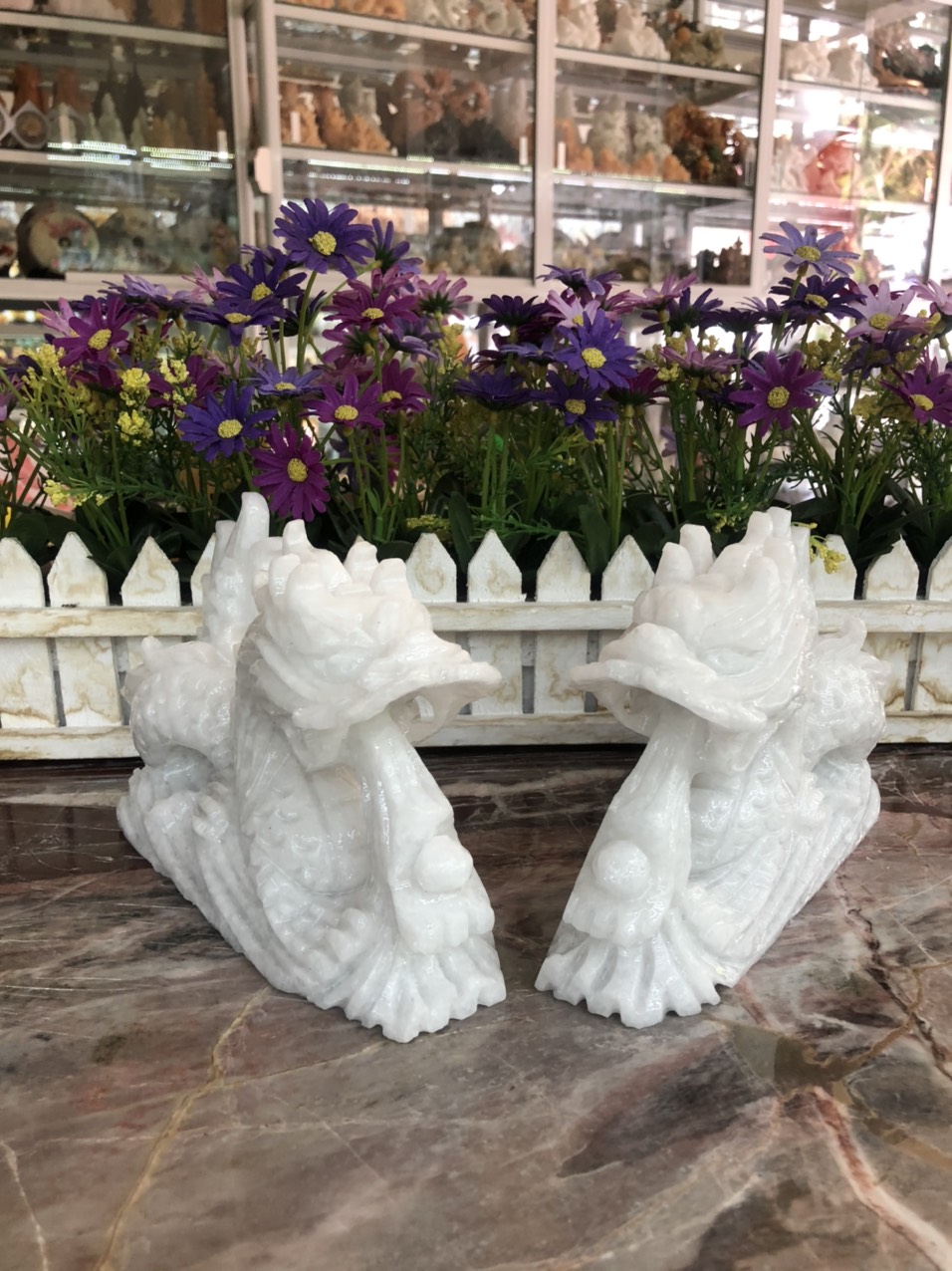 ✨Cặp Rồng nằm phong thủy đá cẩm thạch trắng - Dài 20 cm
