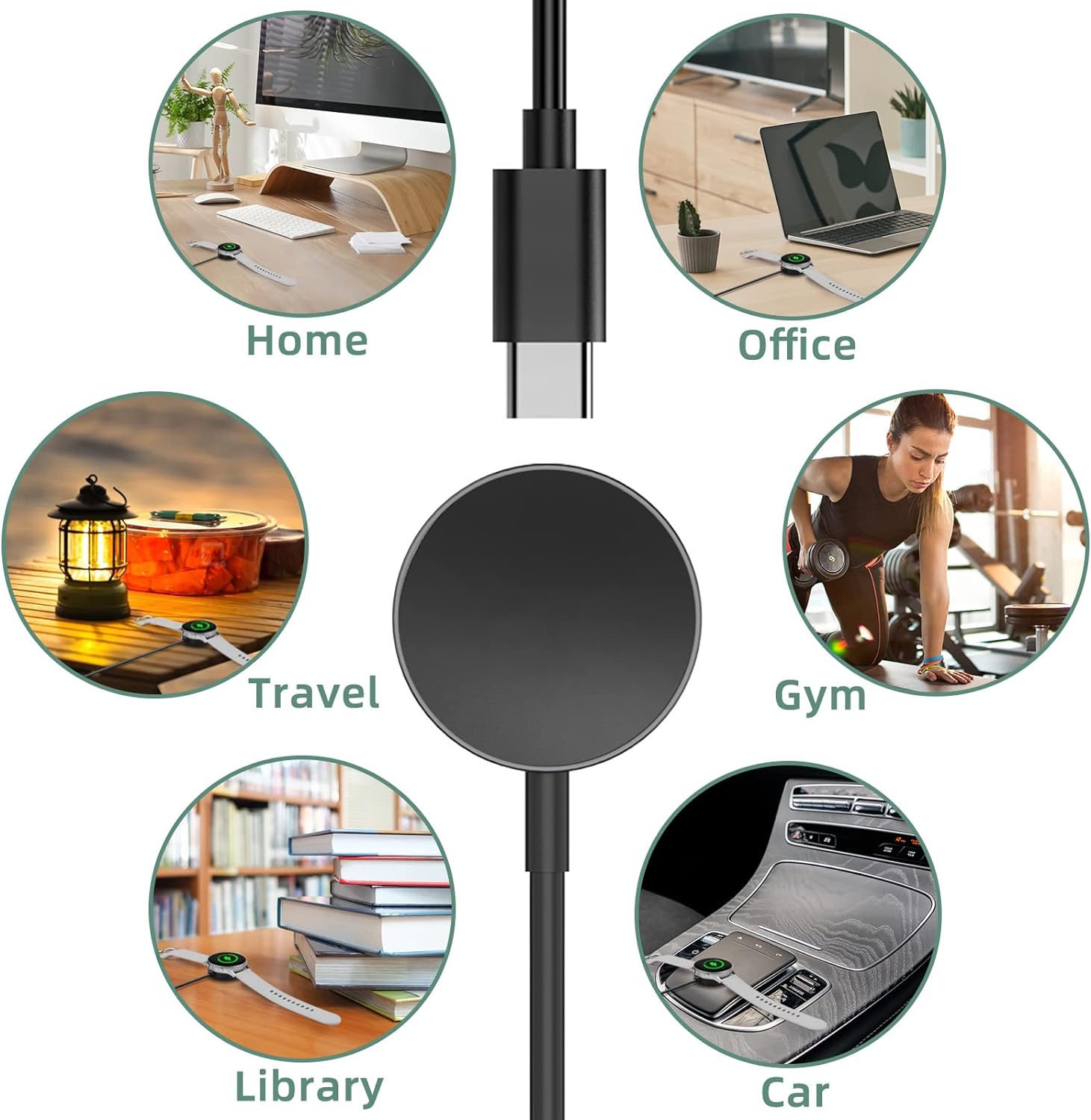 Tên sản phẩm: Cáp Sạc Đế Sạc Kim Loại cho Samsung Galaxy Watch 5/5Pro/6/6Classic/7 & Galaxy Watch Ultra Cổng USB Type C Hỗ trợ: Tất cả các dòng Galaxy Watch đều có thể sạc được