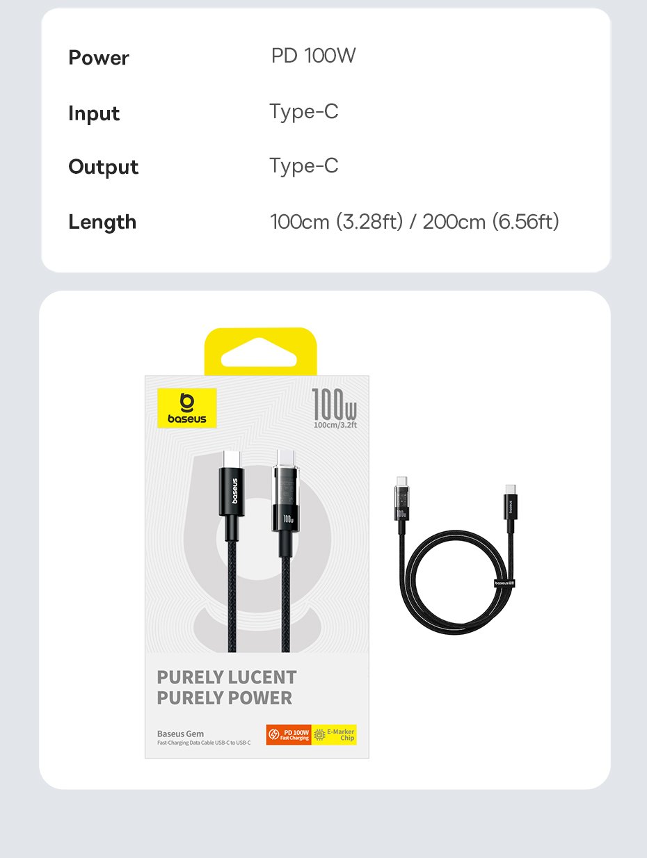 Giới thiệu Cáp sạc nhanh Type C to Type C 100W Baseus Gem Fast-Charging Data Cable (Tốc độ vượt trội, thiết kế thời thượng) - Thương hiệu: Baseus - Model: CB000092 - Công suất: PD