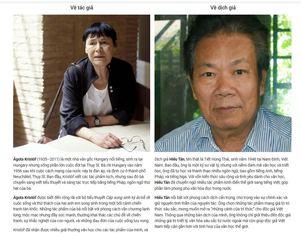 Ágota Kristóf (1935–2011) là một nhà văn gốc Hungary nổi tiếng, sinh ra tại Hungary nhưng sống phần lớn cuộc đời tại Thụy Sĩ. Bà rời Hungary vào năm 1956 sau khi cuộc cách mạng của nước này bị đàn áp, và định cư ở thành phố Neuchâtel, Thụy Sĩ. Ban đầu, Kristóf viết các tác phẩm kịch, nhưng sau đó bà chuyển sang viết tiểu thuyết và sáng tác trực tiếp bằng tiếng Pháp, ngôn ngữ thứ hai của bà.