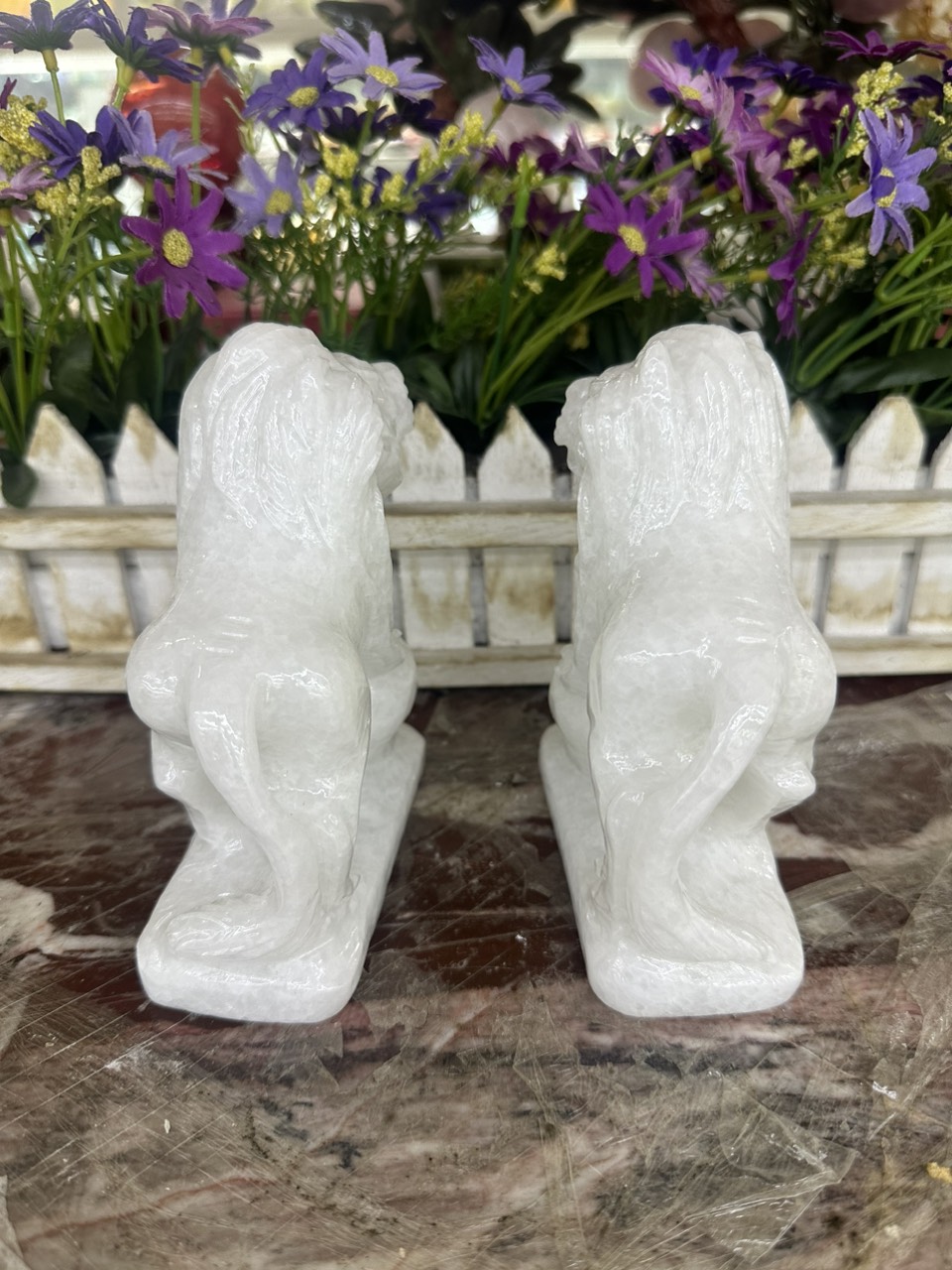 ✨Cặp Sư Tử phong thủy đá cẩm thạch trắng - Cao 13 cm